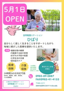 この度、令和7年5月1日に訪問看護ステーションひばりをオープンいたしました。ワーイ♪ヽ(゚∀゚)メ(゚∀゚)メ(゚∀゚)ノワーイ♪